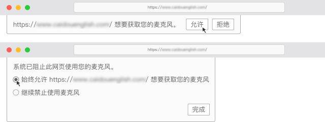 3. 若出现申请获取麦克风权限弹框时,请点击,“允许获取权限”的选项(如下图所示):